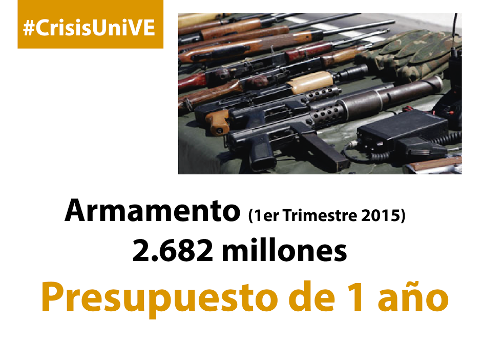 González presentó cifras que demuestran que el gobierno no tiene voluntad política para solventar la crisis universitaria. Por ejemplo, 1 sukhoi cuesta 50 millones de dólares (41 mil millones de bolívares), se compraron 13 sukhoi, gasto que representa la asignación del presupuesto para las universidades por un año o el costo del vehículo usado por Nicolás Maduro para las primarias del PSUV tiene un costo de 225.000 dólares (184 mil 500 bolívares) con lo que se podrían adquirir 30 unidades de transporte público.