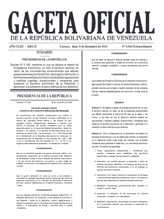 El Ejecutivo venezolano optó por prolongar el estado de emergencia económica por 60 días, una decisión que otorga al gobierno la potestad de implementar medidas extraordinarias en los ámbitos económico, financiero y social, buscando mitigar los desafíos que plantea el panorama actual.