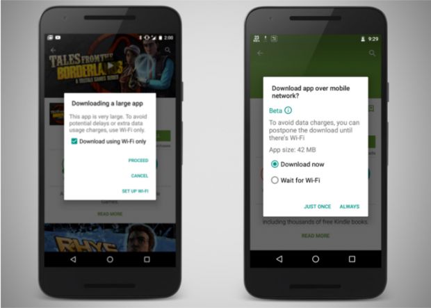 Gracias a la nueva funcionalidad que está probando Google en una serie de usuarios, se podrán posponer todas las descargas que se deseen hasta que, de nuevo, contemos con conexión WiFi. Actualmente, cuando intentamos descargarnos una app de Google Play que supere los 100MB, el sistema nos pregunta si realizar o no la descarga. Gracias a este nuevo cambio que prueba Google, se nos preguntaría ante cualquier aplicación y no sólo ante las que superan un tamaño de archivo en concreto.