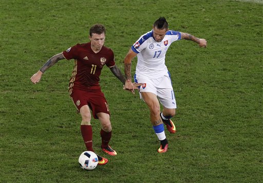 Marek Hamsik, con una asistencia a Daniel Weiss y con un golazo, dirigió la victoria balsámica deEslovaquia por 1-2 ante Rusia, que, con un punto en dos jornadas, se complicó la existencia en laEurocopa de Francia.