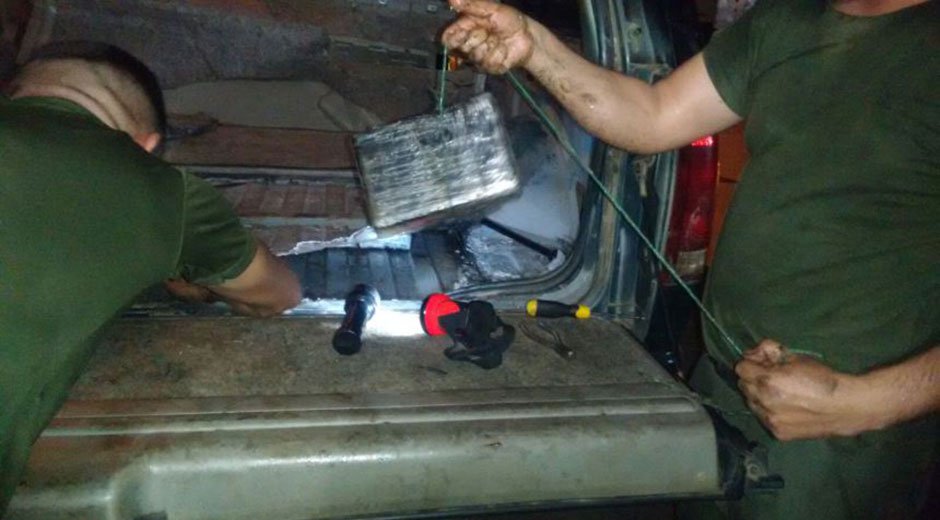 Dentro del vehículo se encontraron ocultas de manera doble fondo en el guarda fango trasero derecho e interior del porta maletas tal cantidad de cocaína.