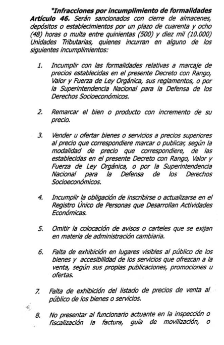 Serán sancionados con cierres de almacenes, depósitos y establecimientos o multas entre 500 y 10 mil Unidades Tributarias: