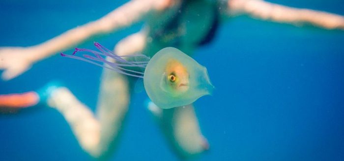 Con esta curiosa y rara escena se encontró el fotógrafo australiano Tim Samul mientras buceaba. “¡He encontrado un pez dentro de una medusa! Estaba atrapado allí, siendo controlado por la medusa“, escribió Samuel junto a la foto que publicó en su cuenta de Instagram.