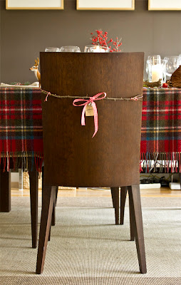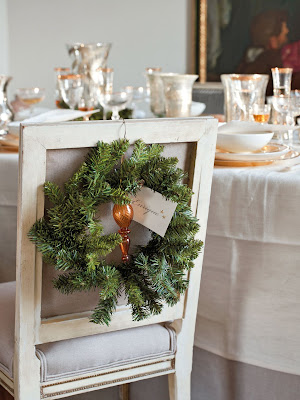 Algo que está muy de moda es la decoración de las sillas. Figuras de tela, coronas de navidad, lazos, piñas…todo sirve para darle un toque navideño al asiento de cada comensal.