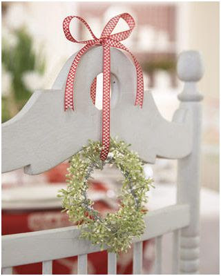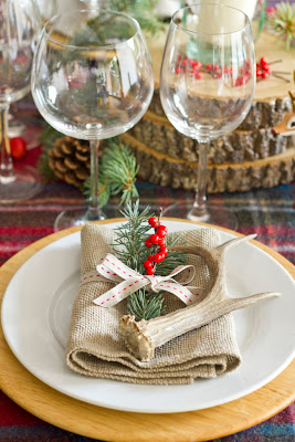 Un adorno muy simple y que ocupa poco espacio (no más del requerido), es el que podemos poner sobre el plato, ya sea para atar la servilleta o los cubiertos. Vemos aquí varios ejemplos, con acebo, lazo o marcasitios.