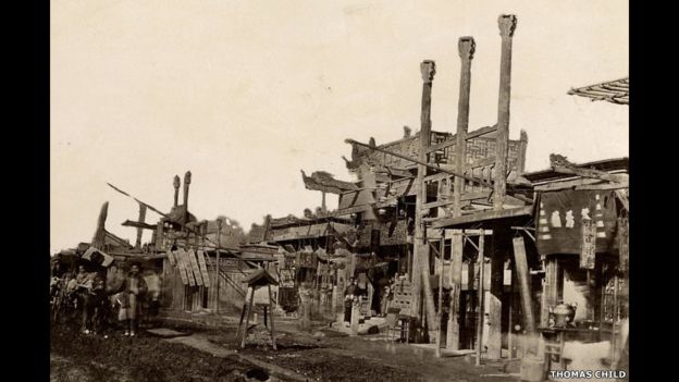 Child tomó esta fotografía del barco de mármol, también conocido como el Barco de la Claridad y el Confort, después de que éste resultó dañado durante la segunda Guerra del Opio.
