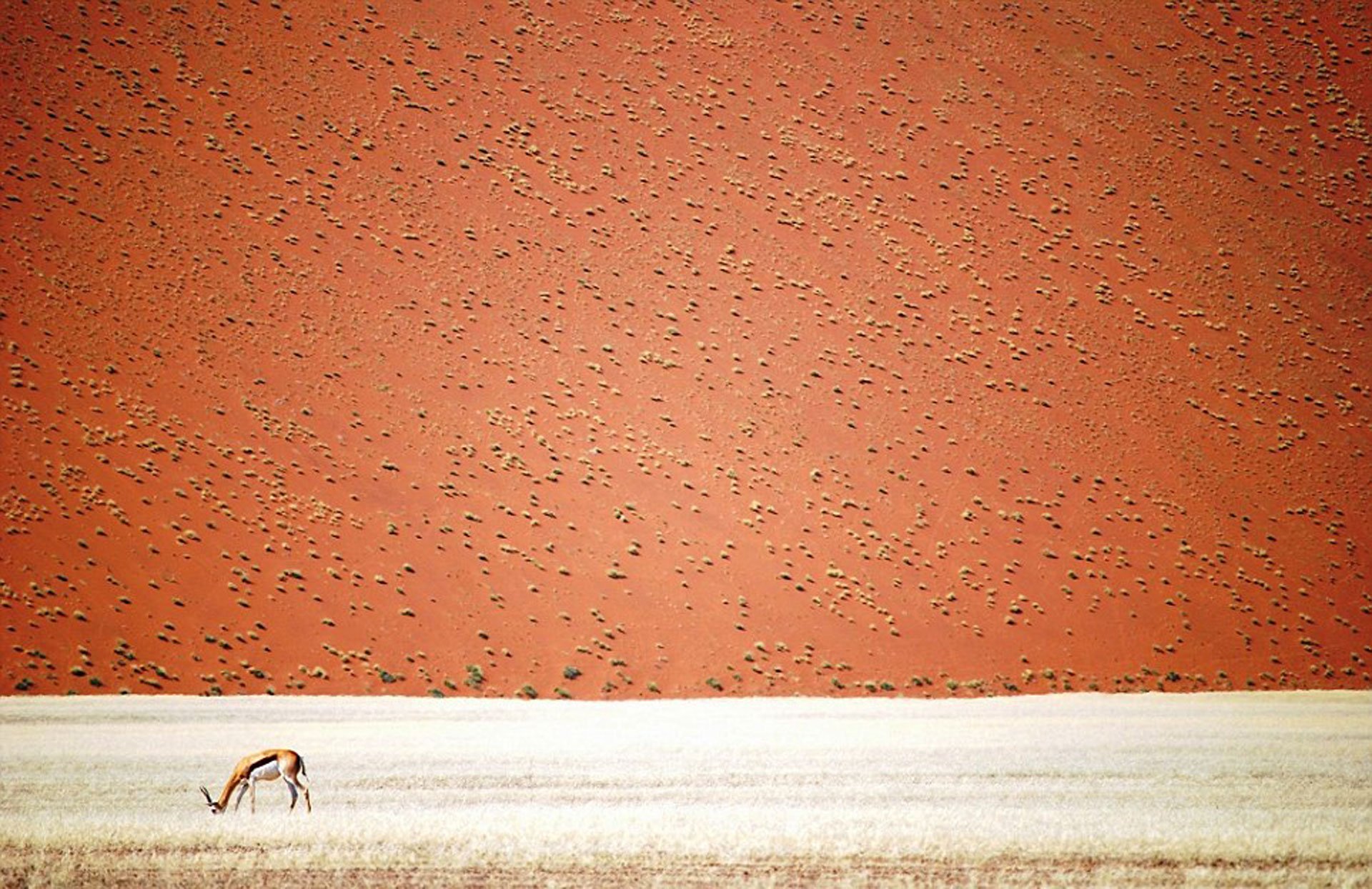 En el desierto de Namibia, la fotógrafa Doris Landertinger. Muestra un antílope pastando en las dunas de Swakopmund