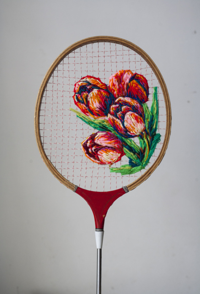 Puede que usted no sea un experto tenista como Rafa Nadal, incluso es posible que tenga olvidada su raqueta en el baúl de los recuerdos. ¿Ha pensado en convertirla en un objeto de decoración? Danielle Clough ya lo ha hecho bordando sobre las cuerdas.