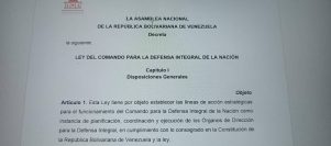 El pasado jueves 11 de noviembre la Asamblea Nacional sancionó, por unanimidad, el Proyecto de Ley del Comando para la Defensa Integral de la Nación.