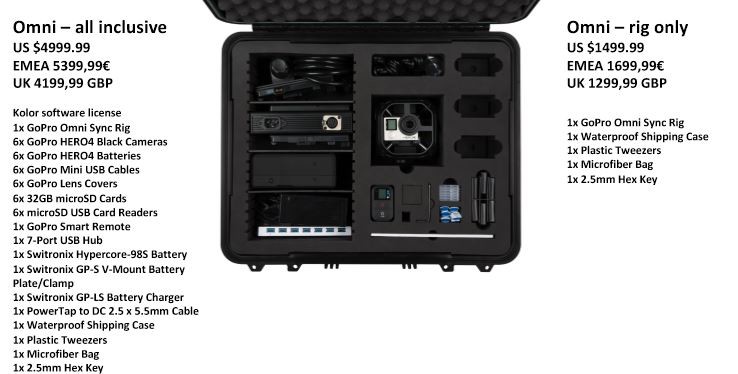Para no hacer esperar a nadie, primero los precios, 5.399,99 euros el pack completo incluyendo GoPros, software y opciones completas de alimentación además de una compacta maleta como transporte. Y si optas por sólo Omni son1.699,99 euros.
