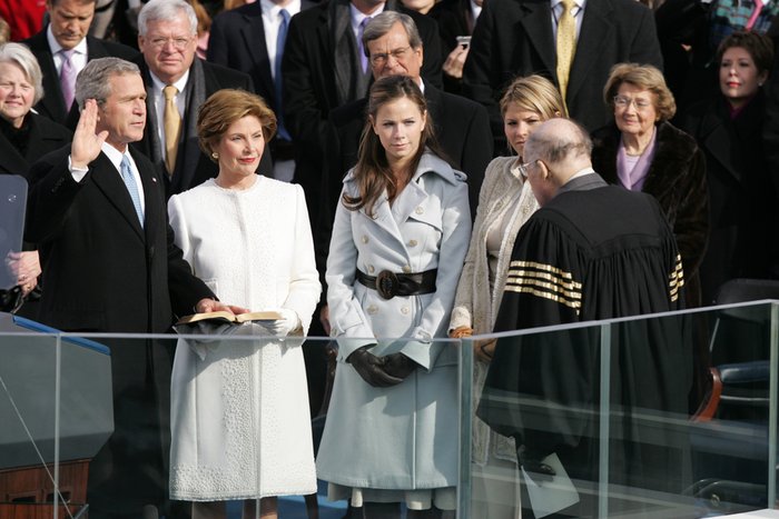 Laura Bush (2001) con un traje diseñado por Judith Leiber