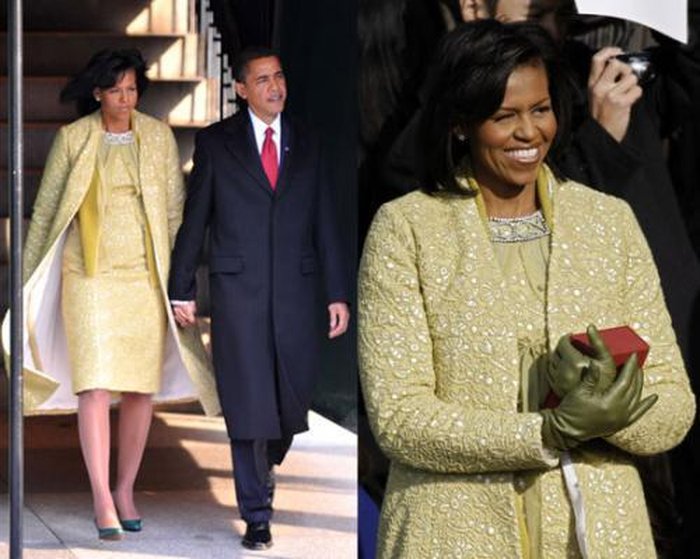 Michelle Obama (2009) con un traje de la diseñadora de origen cubano Isabel Toledo
