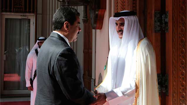 El pasado 12 de enero, Maduro y el emir de Catar se reunieron en Doha, en el marco de una gira regional que realizó el gobernante caribeño para analizar una estrategia para abordar la bajada de los precios del petróleo, que entonces se ubicaba en 40 dólares el barril, casi 17 dólares menos que el costo actual.