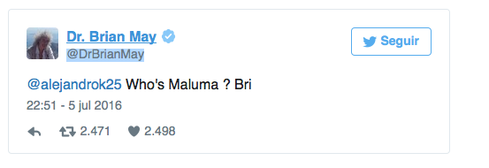 Incluso, fueron tantos los mensajes en Twitter que la protesta llegó hasta Bryan May, guitarrista de Queen, quien sólo respondió a uno de sus fanáticos: “¿Quién es Maluma?”.
