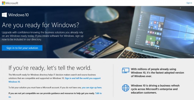 Sin embargo, de las millones de computadoras que no han sido actualizadas desde Windows 7 y 8.1 un porcentaje de ellas corresponde a los negocios. Microsoft está preocupado por ello y, a un par de meses que finalice la oferta de actualización gratuita, lanzó el sitio web «Ready for Windows» que servirá para seducir con Windows 10 a los negocios, como reporta Softpedia.