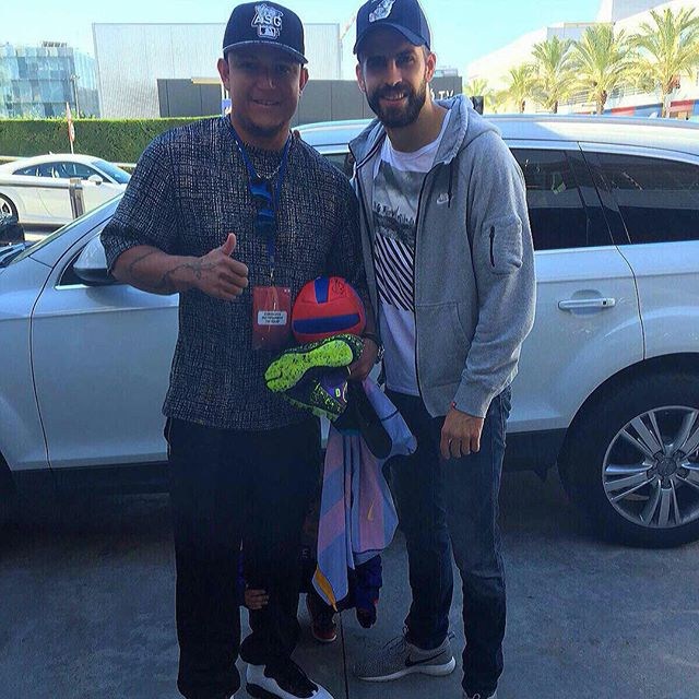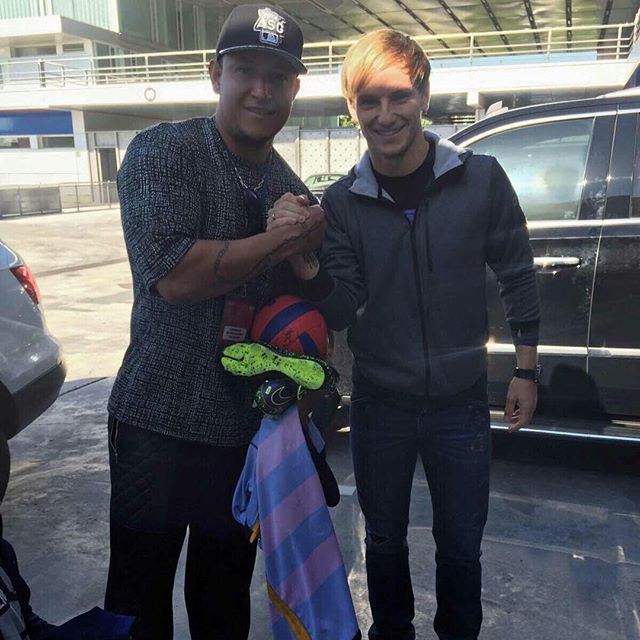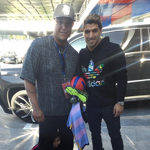 El beisbolista aprovechó la ocasión para saludar a los jugadores del club, entre ellos, el argentino Javier Mascherano, quien subió una imagen junto al venezolano, a través de su cuenta en Twitter.