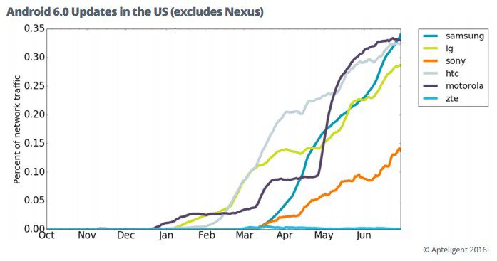 Como podemos observar Motorola y Samsung fueron los más rápidos en dar el salto a Android 6.0, aunque los dueños de la línea Galaxy se centraron más en parches que actualizaciones completas, lo que tampoco deriva en una experiencia grata.