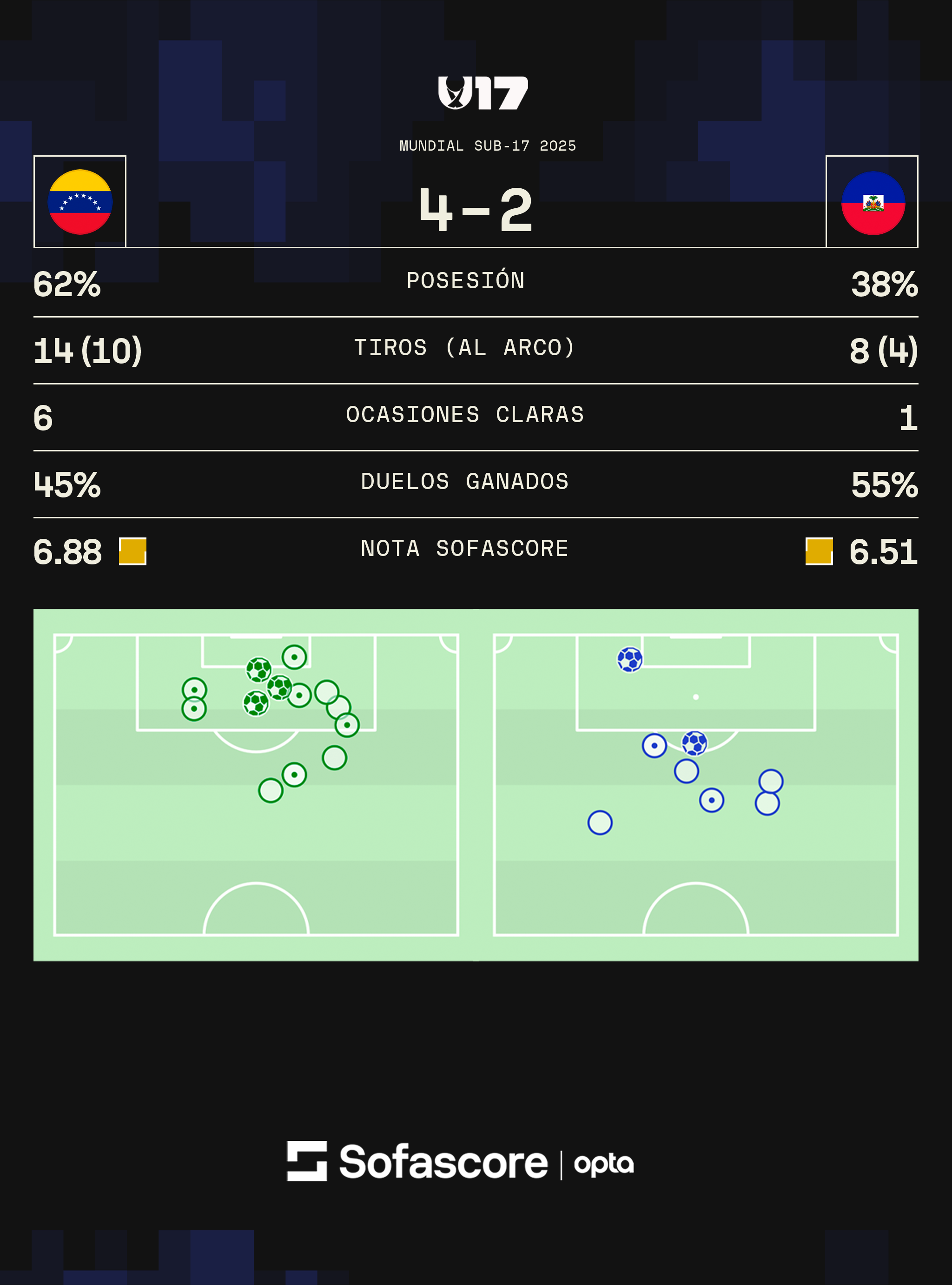 La selección venezolana sub-17 selló su clasificación para los dieciseisavos de final del Mundial de Qatar con victoria vibrante sobre Haití (4-2), en un duelo que puso a prueba su temple y capacidad de reacción. Pese a los seis cambios en el once inicial, el conjunto dirigido por Oswaldo Vizcarrondo mostró desde el arranque una vocación ofensiva que se tradujo en una ventaja temprana.