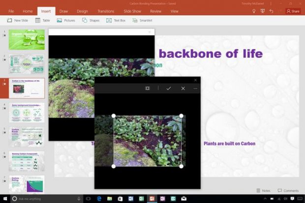 Ahora también se nos va a permitir insertar fotos desde la cámara de fotos del móvil o la tableta (Windows o Android), y ello de una manera directa pudiendo editar la instantánea. De momento es una función para Powerpoint, pero la idea es que esté pronto también disponible en Word y Excel.