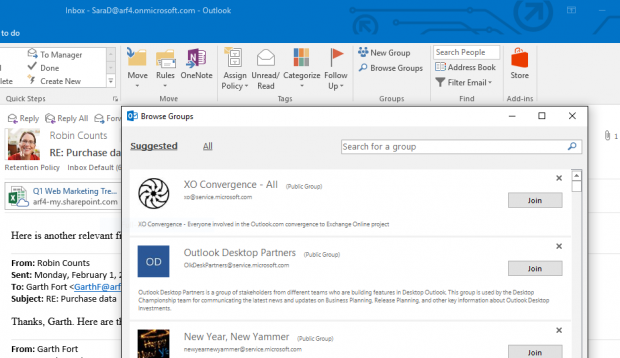 La aplicación de Outlook para escritorio mejora su integración con grupos e incluye nuevas funciones de Archivo para limpiar la bandeja de entrada sin necesidad de borrar los mensajes.