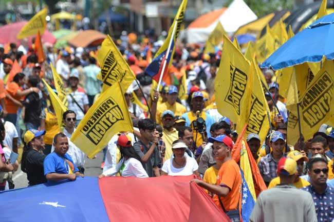 Santiago Rodríguez, alcalde encargado de Valencia, le expresó a los manifestantes que en ocasiones “no nos damos cuenta de lo que hemos avanzado, y con esta lucha vamos a conseguir el revocatorio y la libertad de Venezuela”. El diputado de la Primero Justicia, Marco Bozo, coincidió: “No habrá barrera alguna que nos impida conquistar el cambio, que lo sepan Maduro y Ameliach. Lo haremos con la contundencia del poder del pueblo y la Constitución que es un traje a la medida de a la democracia y hoy nos llama a defenderla. El pueblo seguirá en la calle”.