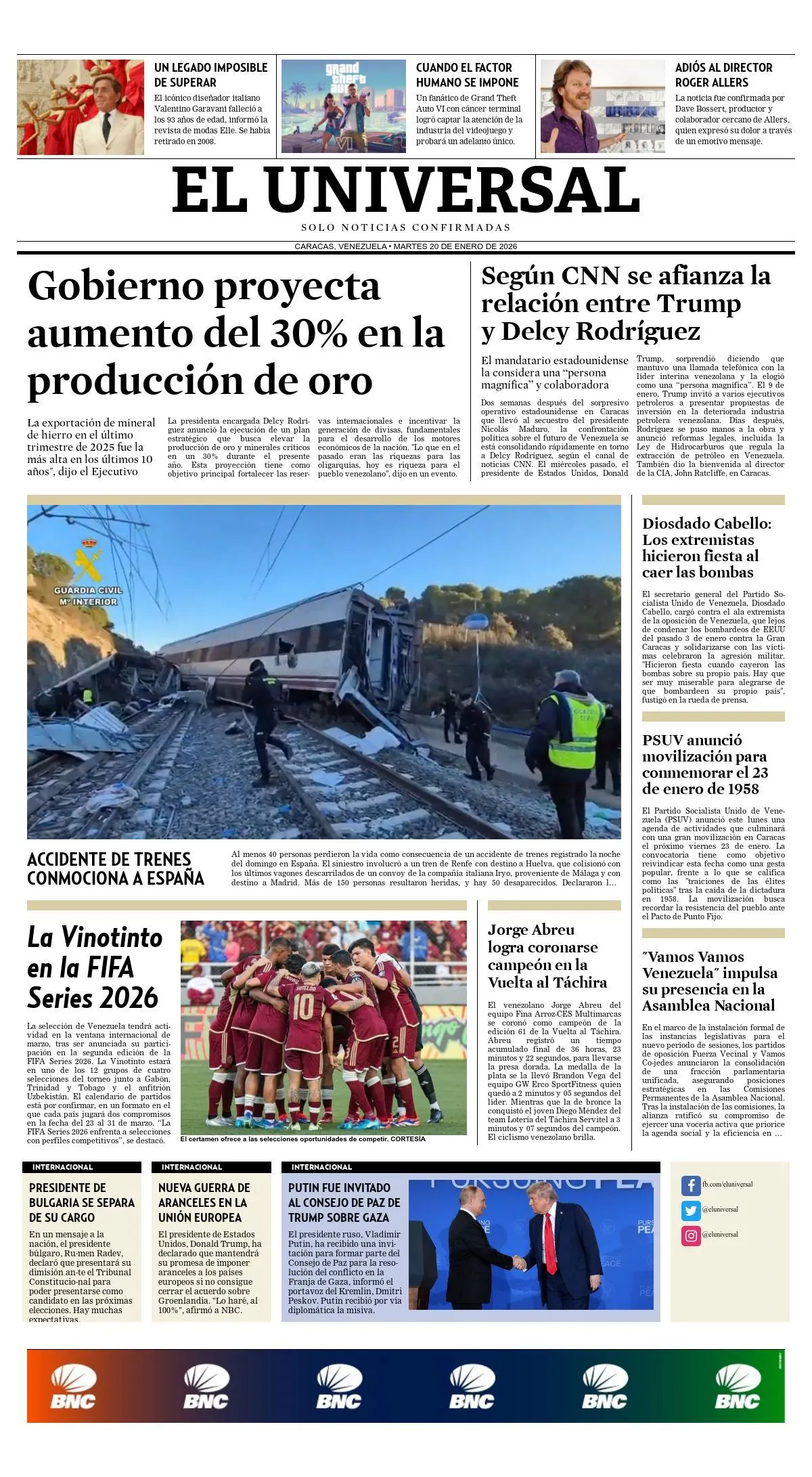 Cabello dice que Venezuela está «en paz» tras cumplirse dos semanas del ataque de EE.UU. 20 enero, 2026