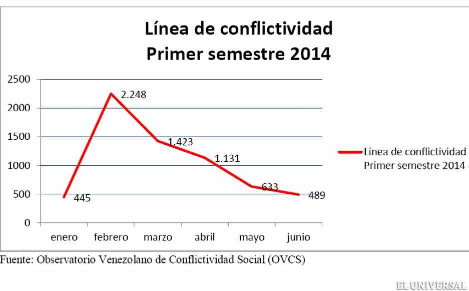 El documento «Conflictividad Social en Venezuela en el primer semestre de 2014» también analizó la ola de protestas que se desarrollaron en todo el país a partir de la primera semana de febrero y destaca que unas 4.589 manifestaciones, que equivalen al 72% del total de protestas, estuvieron relacionadas con el rechazo al Gobierno del presidente Nicolás Maduro y a la represión a manifestantes. El 28 % de las protestas (1780), aunque también estaban orientadas a la exigencia de derechos, no plantearon un rechazo al Presidente y su equipo de Gobierno.