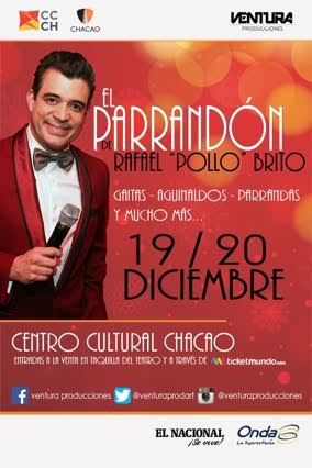 Rafael “el Pollo” Brito, uno de los artistas más completos y exitosos en la actualidad, despide el 2015 regresando a sus raíces al interpretar gaitas, parrandas y aguinaldos, entre otros ritmos, en un espectáculo navideño que el sábado 19, a las 7:00 p.m., y el domindo 20 de diciembre, a las 5:00 p.m, llenará de alegría el Teatro de Chacao.