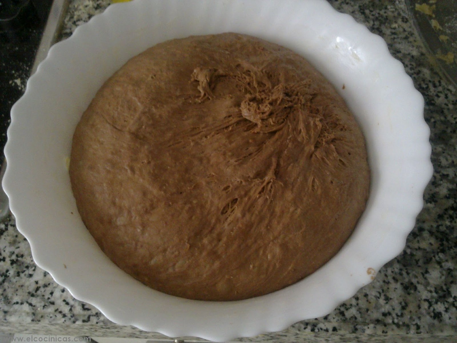Pasados los 30 minutos de fermentación, la masa habrá subido. Nos quedará algo así: