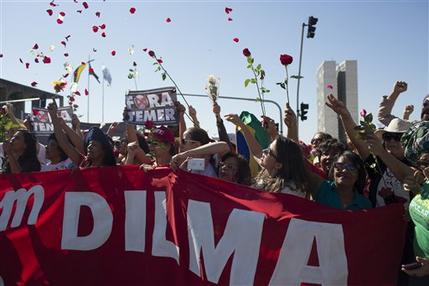 El lunes, varios cientos de partidarios se manifestaron frente al Congreso y aclamaron a Rousseff a su llegada al lugar. Frente al Congreso se erigió un gran muro para separar a partidarios de la presidenta de los activistas que desean la destitución.