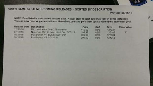 El documento filtrado procede de la tienda norteamericana GameStop que lista en una hoja de inventario la existencia de una nueva Xbox One de 2TB a un precio de 449,99 dólares, bastante por encima de los modelos actuales.