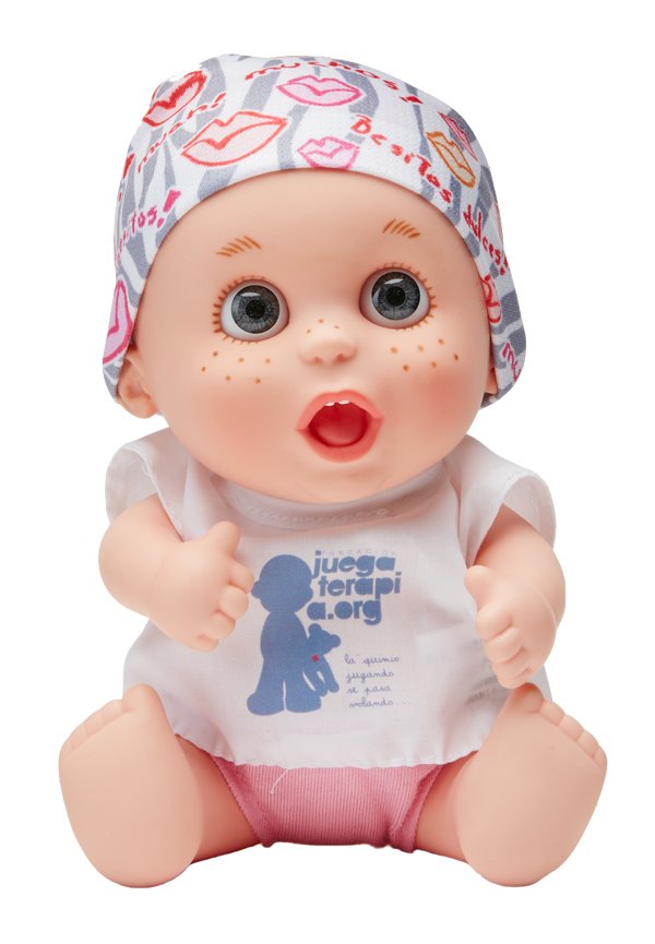 El tierno juguete es parte de una colección llamada Baby Pelones, creada por la Fundación Juegaterapia, con sede en España. La colección se compone de bebés que están pelones, y todos usan un pañuelo, similar al que usan muchos pacientes que tienen cáncer y que se han sometido a quimioterapia.