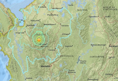 El USGS dijo que el epicentro del temblor se ubicó a 129 kilómetros al norte noroeste de Medellín, con una profundidad de 72 kilómetros.