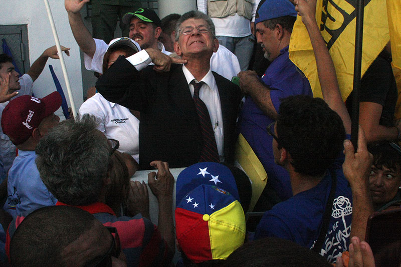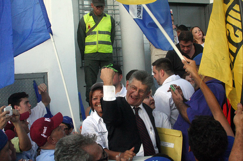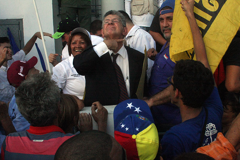 El diputado reelecto a la Asamblea Nacional y secretario general de Acción Democrática, Henry Ramos Allup, acudió este miércoles a la toma de posesión de los diputados elegidos el pasado 6D en Caracas.