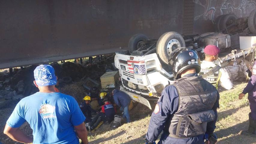 Un camión de carga pesada se volcó en la Autopista Regional del Centro en sentido Maracay-Caracas, dejando al conductor herido. Hasta el momento se desconoce con exactitud el estado del chófer y su identificación. En el sitio los cuerpos de seguridad atienden el siniestro. UR