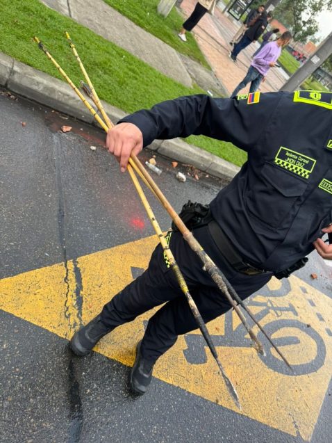 Colombia: Encapuchados atacan con arcos, flechas y explosivos a la fuerza pública en las inmediaciones de la Embajada de los EE.UU