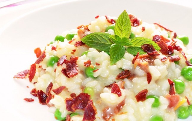 Risotto de guisantes y jamón serrano