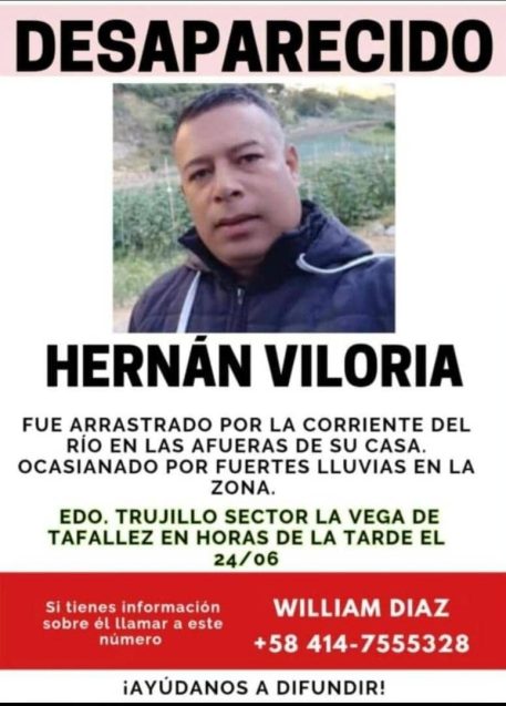 Los cuerpos de seguridad del estado Trujillo, siguen buscando a Hernán Viloria, un agricultor que desapareció el pasado martes 24 de junio durante el deslave registrado en la Mesa de Esnujaque, específicamente en la vía principal Valera-Timotes. Según el periodista Alexander González, las fuertes precipitaciones afectaron al menos a seis municipios de Trujillo, «Boconó es el […]