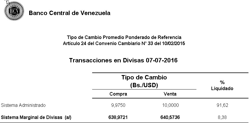 Esta tasa, que constituye una referencia para lo que será el nuevo dólar flotante Dicom, comenzó a cotizarse a 206,92 bolívares el pasado 9 de marzo.