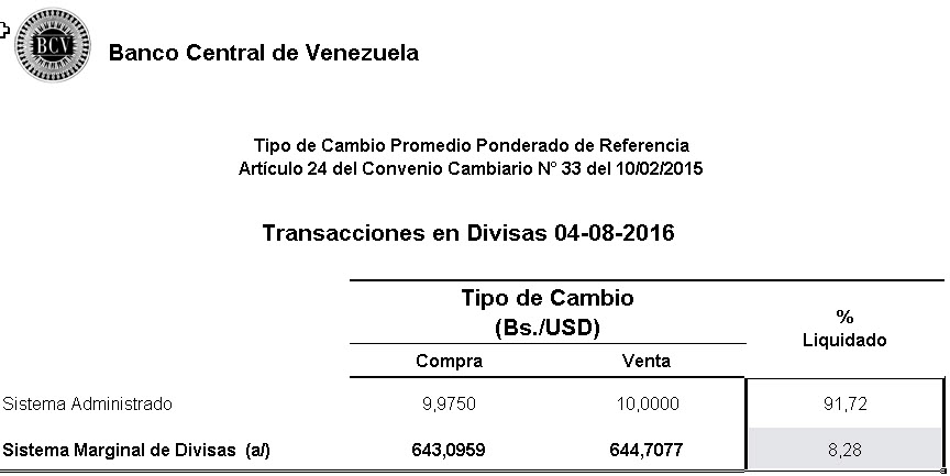 El organismo emisor también informó que por este mercado oficial se atendió 8,36% de las liquidaciones de divisas procesadas en el día, quedando el 91,64% restante en manos de los sistemas administrados.