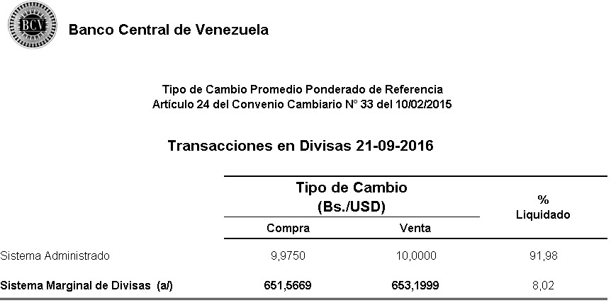 El organismo emisor también informó que por este mercado oficial se atendió 8,36% de las liquidaciones de divisas procesadas en el día, quedando el 91,64% restante en manos de los sistemas administrados.