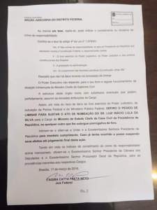 Un juez de Brasilia anuló de forma cautelar el nombramiento del expresidente brasileño Luiz Inácio Lula da Silva como ministro de la Presidencia del gabinete de su sucesora, Dilma Rousseff, informaron fuentes judiciales.