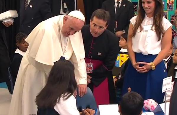 Después de un día bastante ajetreado –Francisco estuvo en la ONU, visitó la Zona Cero y dio un paseo por el Central Park– el pontífice llega a esta escuela que atiende a 295 niños, en su mayoría latinos y negros.