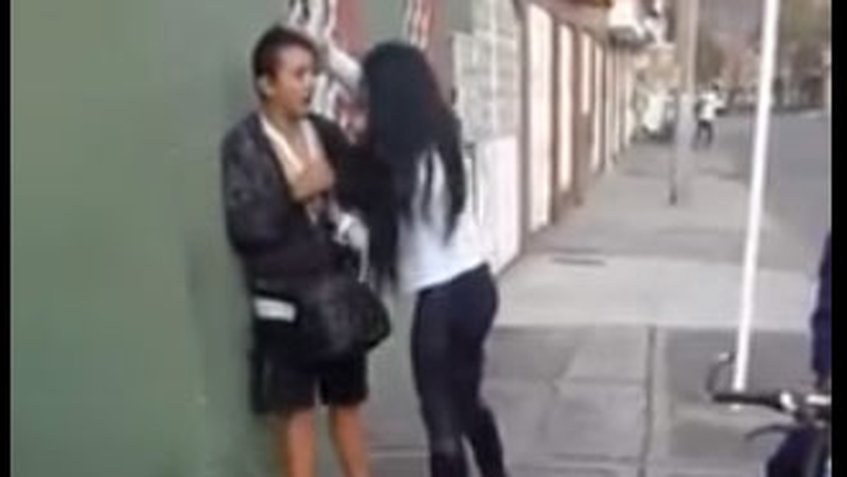 La joven golpeó al hombre y lo tomó por el cabello mientras lo insultaba y le recriminaba por intentar robarla.