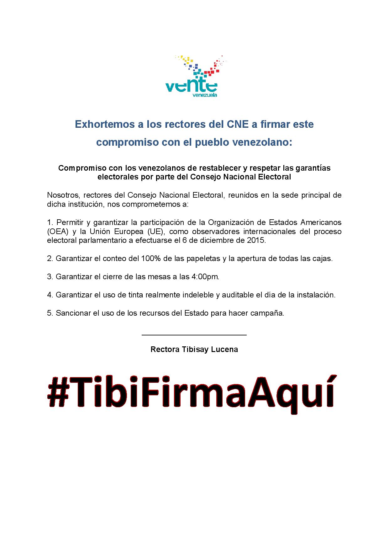 En un documento, Vente Joven insta a los rectores a que permitan y garanticen la observación internacional de la Organización de Estados Americanos (OEA) y la Unión Europea (UE), que aseguren que será contado el 100% de los votos y que las mesas serán cerradas a las 4 pm.