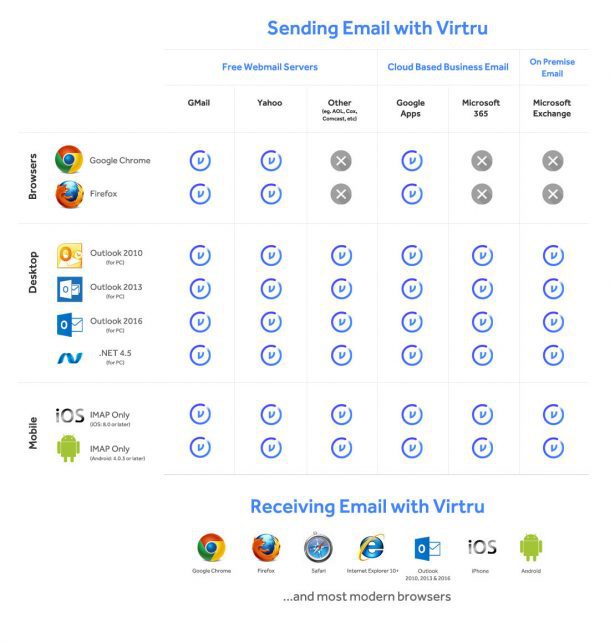 Si bien sus propios fundadores admiten que la tecnología usada por Virtru no es la tecnología más segura disponible, es necesario reconocer que las alternativas más seguras suelen ser o costosas o difíciles de usar. La verdadera ventaja de Virtru radica en su sencillez de instalación e implementación, y en su soporte para múltiples plataformas. El funcionamiento entre un usuario de Virtru y uno que no lo utiliza es similar al que explicamos para otras aplicaciones web de correo cifrado, sólo que utilizando tu propia dirección de correo que ya utilizas.
