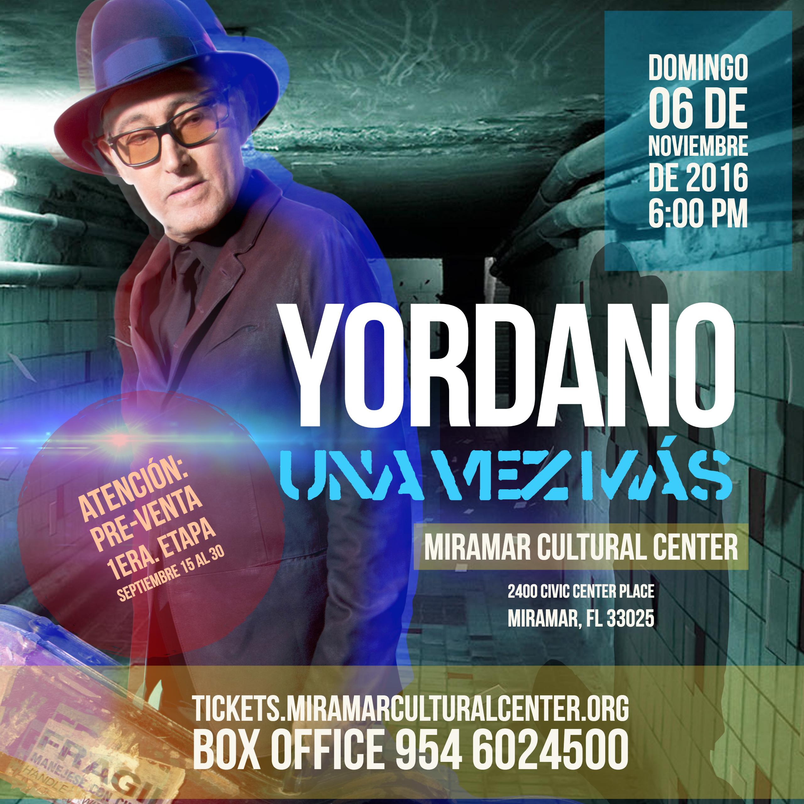 Según el propio Yordano, este concierto promete ser “histórico y lleno de emociones”, cuando este querido cantautor se adueñe de la escena para interpretar, además de su repertorio de siempre, algunas de las canciones que ha compuesto recientemente y que confiagrabar en un disco el año entrante.